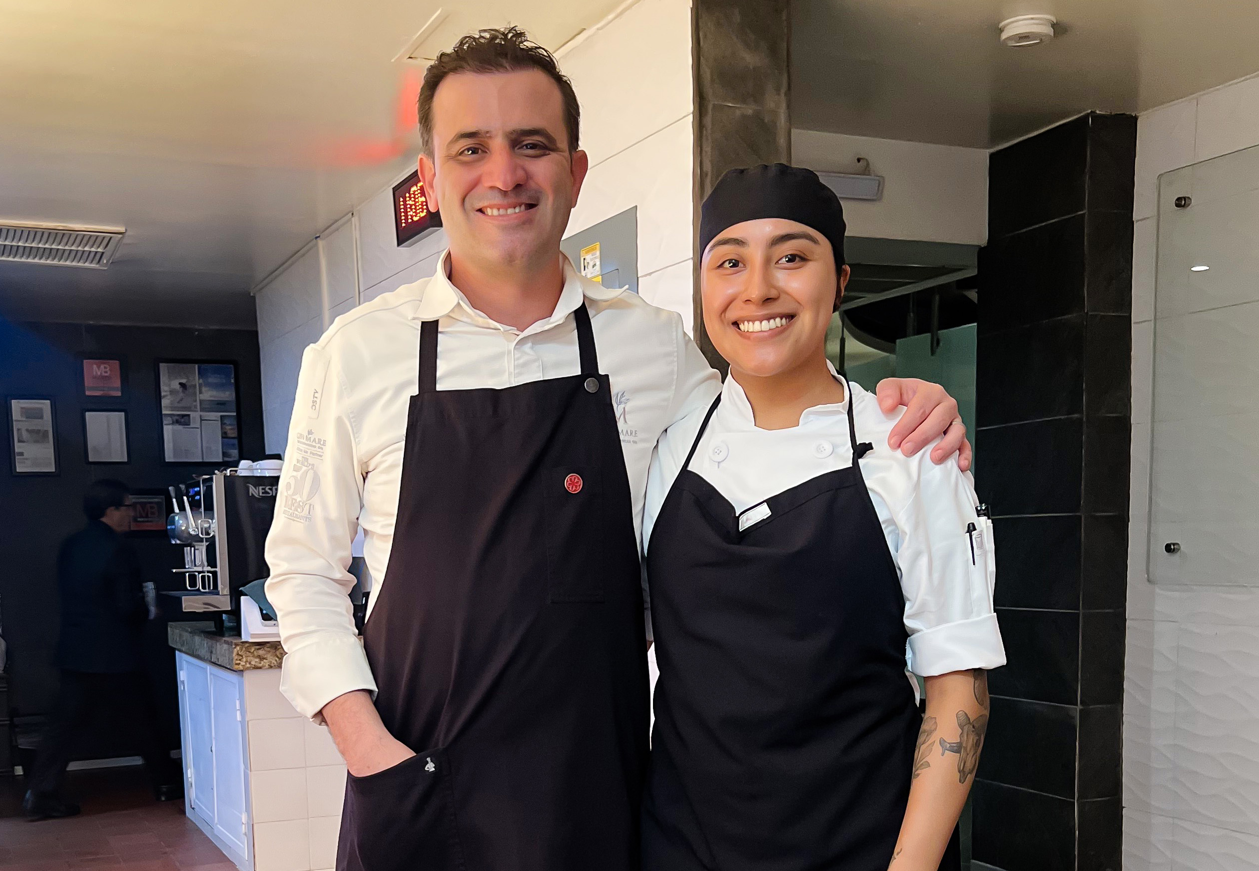 Siento que van muy de la mano, porque en la escuela nos enseñan a ser organizados, a considerar el tiempo, a mantener nuestro espacio limpio, a manejar correctamente los insumos y a respetar el producto. Y cuando estás en el restaurante compruebas el valor de lo que estás aprendiendo, porque contar con esta disciplina te ayuda a trabajar mejor y a ser mejor en todos los aspectos.